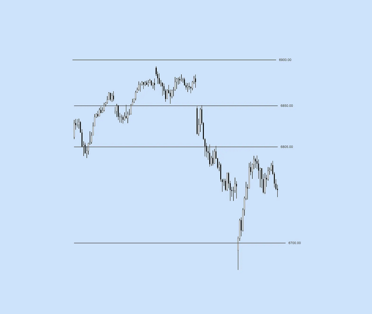 Dips into 6700 may temporarily see active buying but ultimately considered as small fish unless above 6900+.